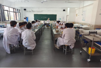 10月12日,实训楼C307,2021级护理11、12班,边慧老师的“基础护理技术I”课程,学生佩戴口罩认真听讲,课堂秩序良好。