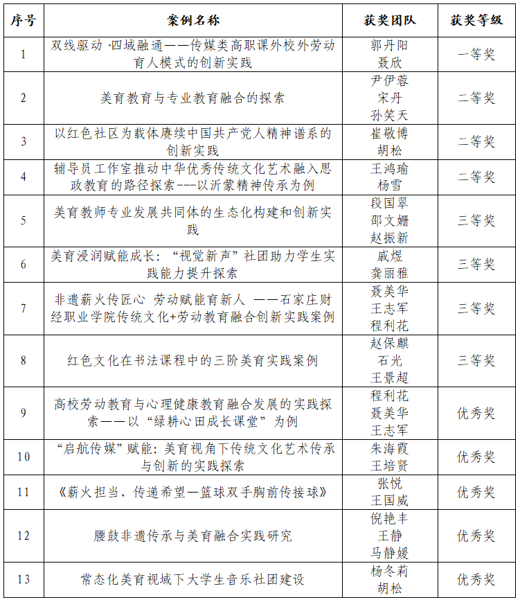 根据《BV伟德官方网站关于征集“落实五育并举,强化学生体育、美育、劳动教育”优秀案例的通知》(教务处[2025]14号)工作安排,经过各单位积极申报与推荐,学校评审,评选出一等奖1项、二等奖3项、三等奖4项、优秀奖5项。现将拟获奖名单予以公示(名单详见附件)。