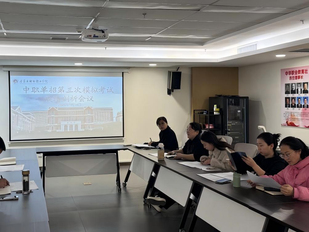 为深入摸底单招升学班备考进展,有效提高单招教学质量,1月14日,学校召开第三次模拟考试成绩剖析会,相关学校领导出席会议,教务处、学生处、招生办公室负责人,文理学院院长、书记参会,会议由教务处副处长王景超主持。