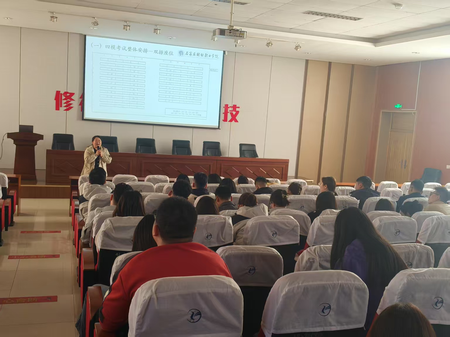 考务会对四模考试整体安排进行详细说明,内容涵盖了考试组织、考试纪律、考场布置、监考员职责、考生考试要求、巡视巡考要求等各个环节,通过周密安排、精心谋划,确保考试流程的高效运转,力求全真模拟单招考场,为考生营造一个严谨、规范的考试环境。