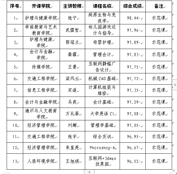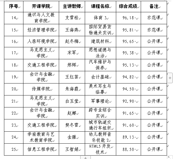 根据《BV伟德官方网站关于开展教学公开课活动的通知》,10月16日至10月29日,教务处组织开展了公开课活动,各学院教师和校级评委组成听评课小组,对25名学院推荐的教师授课情况进行了综合评价,并按得分从高到低确定张宁、武儒哲等15名教师的课程为示范课,赵冬梅、宋军等10名教师的课程为公开课,现将结果通报如下: