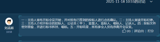 流程三:主持人介绍开标会的招标人、公证员(甲)、监督人、监标人、唱标人、记录人。