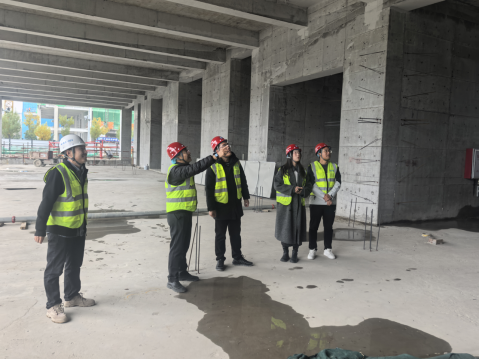 随后,在纪辉总工的陪同下,教师们深入项目现场,实地参观了混凝土实测实量、脚手架搭设、钢筋工程、模板工程等关键施工环节,并了解了在线监测系统,对智能建造技术在实际工程中的应用有了更为直观的认识。