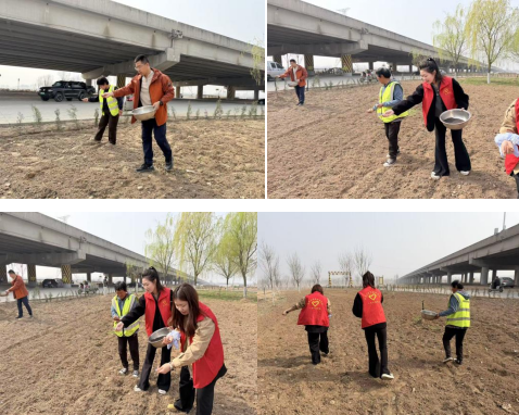 在当地工作人员的指导下,志愿者们还与一线劳动者并肩协作,在河岸空地上播撒花种。大家手持铁盆,将花种均匀撒入翻整好的土壤中,期待着春日里繁花绽放,为崖沙燕营造更加优美的栖息环境。