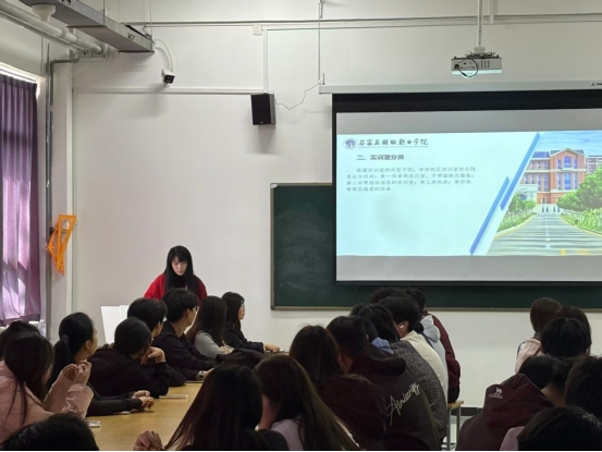 培训围绕实训室用电安全、器材规范使用、场地卫生管理及隐患排查上报等关键内容展开,冯向宁老师结合实训室日常管理常见问题,细致明确班委在实训前、中、后的安全管理职责,系统讲解隐患识别重点与处置上报流程。