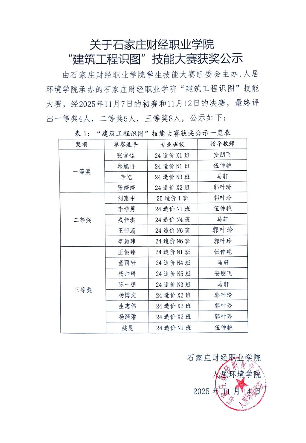 关于BV伟德官方网站“建筑工程识图”技能大赛获奖公示