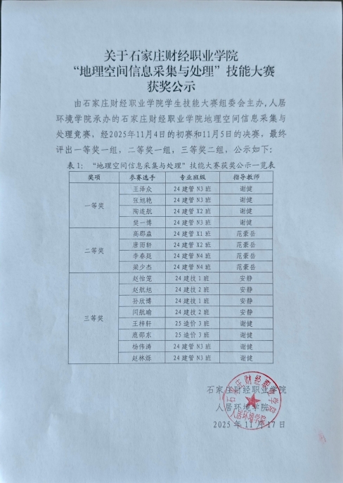 关于BV伟德官方网站“地理空间信息采集与处理”技能大赛获奖公示