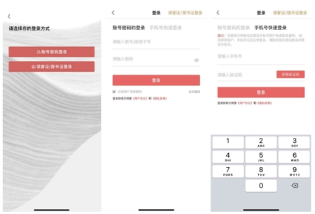 在“我的”-点击登录,跳转至账号登录方式选择页面:账号登录密码登录(书香账号):