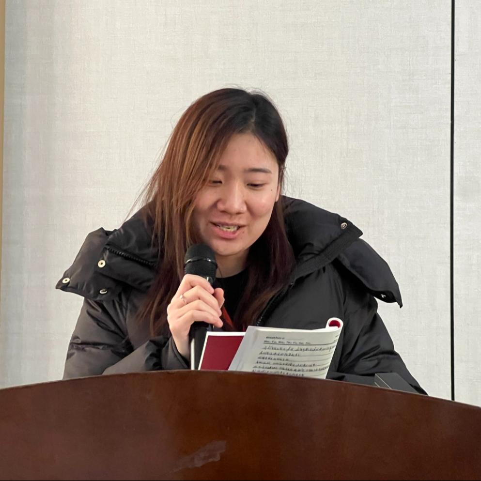 张潇月同学以青马精神中的”责任担当“为核心,讲述了参与社区敬老等志愿服务的经历。她表示,青马工程倡导的”奉献、友爱、互助、进步“的精神,是她自己坚持公益实践的动力源泉,一次次深入基层的服务让她真正领悟了马克思主义”实践是检验真理的唯一标准“的深刻内涵,更坚定了以实际行动践行青年担当的信念。