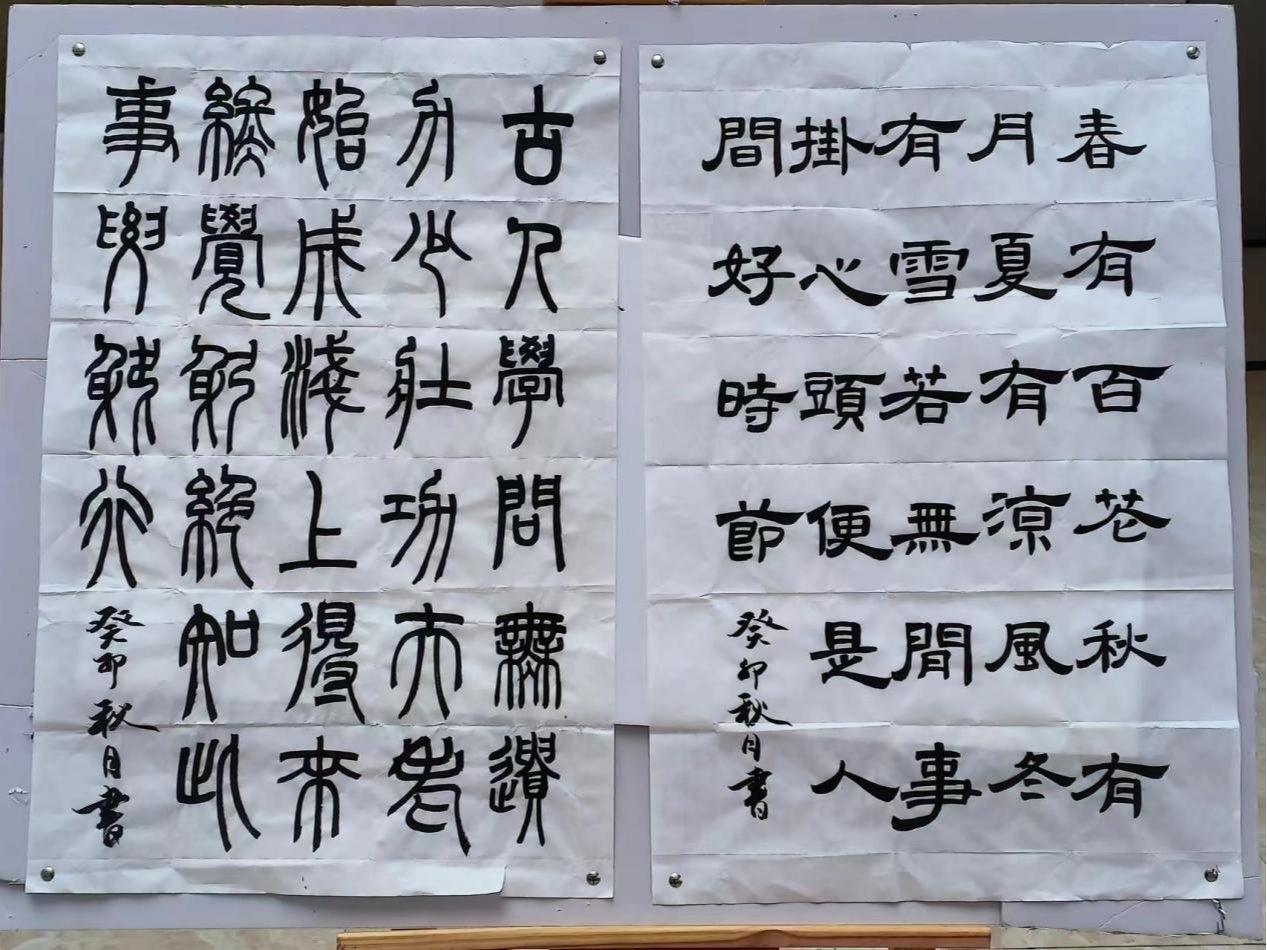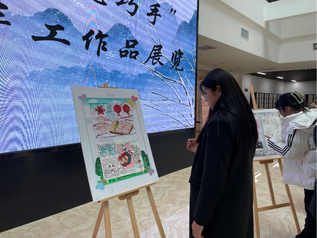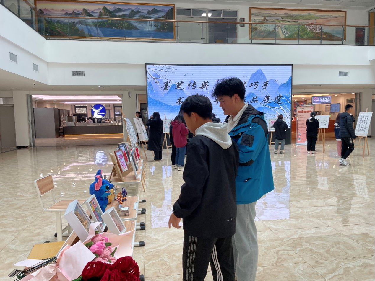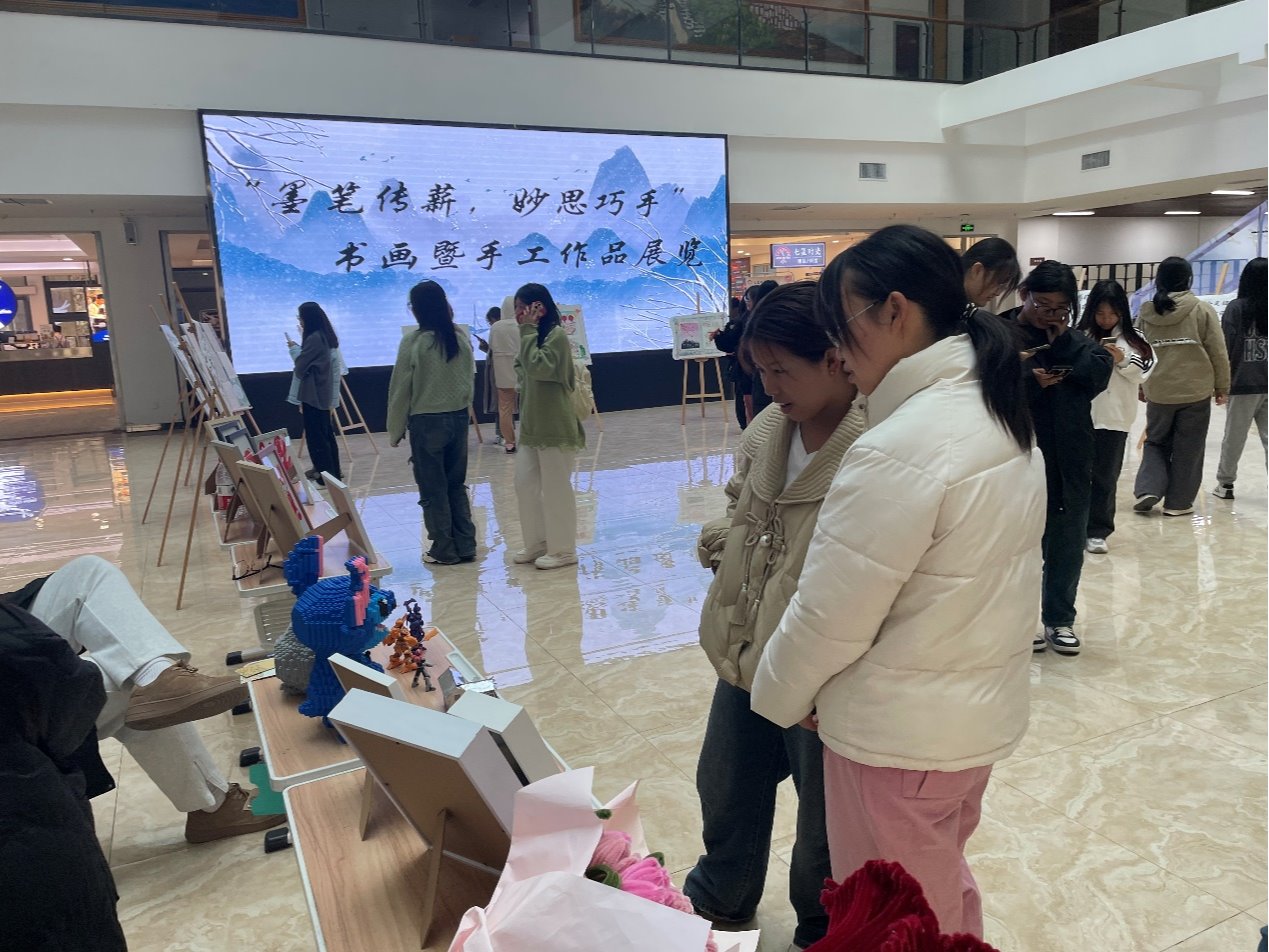 为了吸引校园内的书画和手工爱好者,推进社团文化的蓬勃发展,丰富校园文化相互交流,同时让更多喜爱书画和手工制作的同学们感受到书画与手工带来的“书心静气 方寸万般”的意境,德艺书画社、手工社于11月8日在图书馆二楼举行“笔墨传薪 妙思巧手”立冬主题作品展。