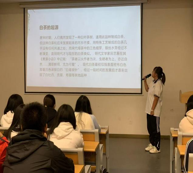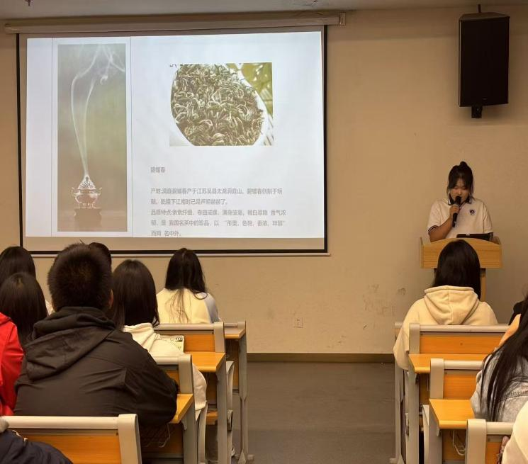 在茶文化知识讲解环节,主讲人绘声绘色地阐述了茶的历史渊源、种类差异,以及茶文化对人们生活的积极意义与深远影响。同学们全神贯注地聆听,踊跃参与互动交流,对茶文化的认知由此更加深刻透彻。