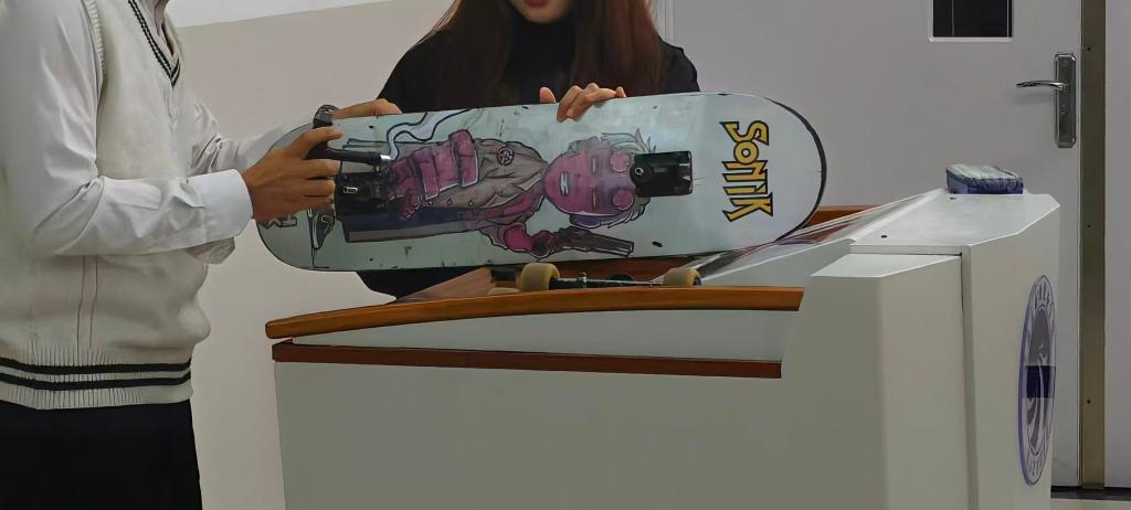 核心教学环节和现场问答吸引了同学们的好奇,通过慢动作拆解滑板零件拼装讲解,让大家更加充满探索与激情明白滑板的核心精神是自由表达,挑战极限和社群共融。