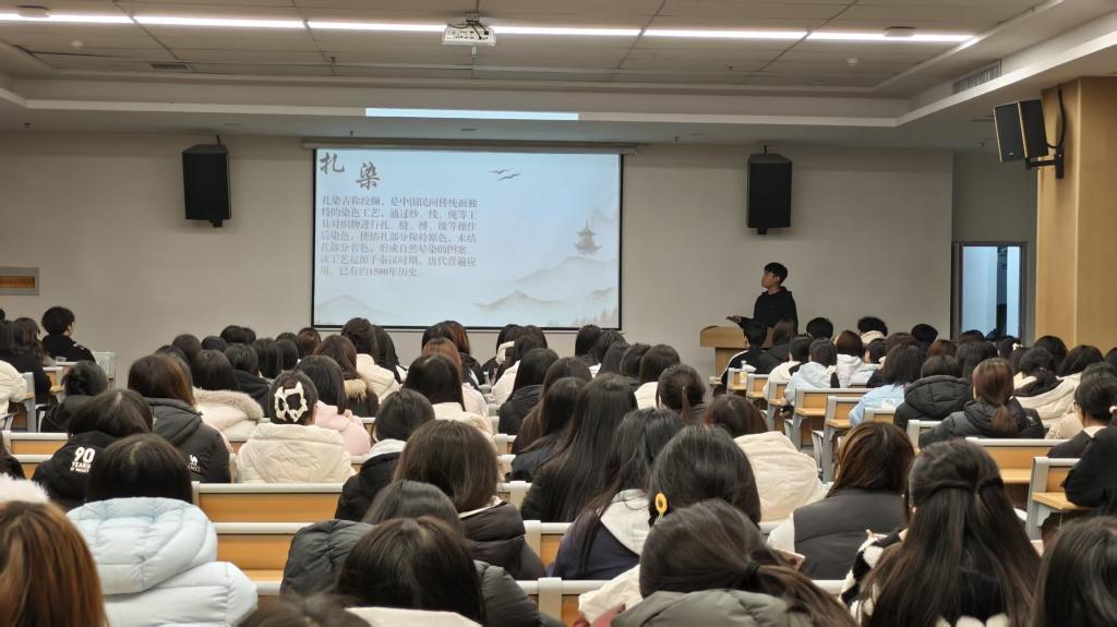 为传承中华优秀传统手艺,深化青年学子对非遗技艺的认知认同,大力弘扬精益求精的工匠精神,11 月 6 日,“捆扎留诗意,浸染显匠心” 主题讲座在伟德官网图书馆第二报告厅成功举办。活动通过传统技艺讲解与视频观摩相结合的形式,助力社员系统理解捆扎与浸染技艺的文化内涵,为校园传统文化传承注入鲜活力量。
