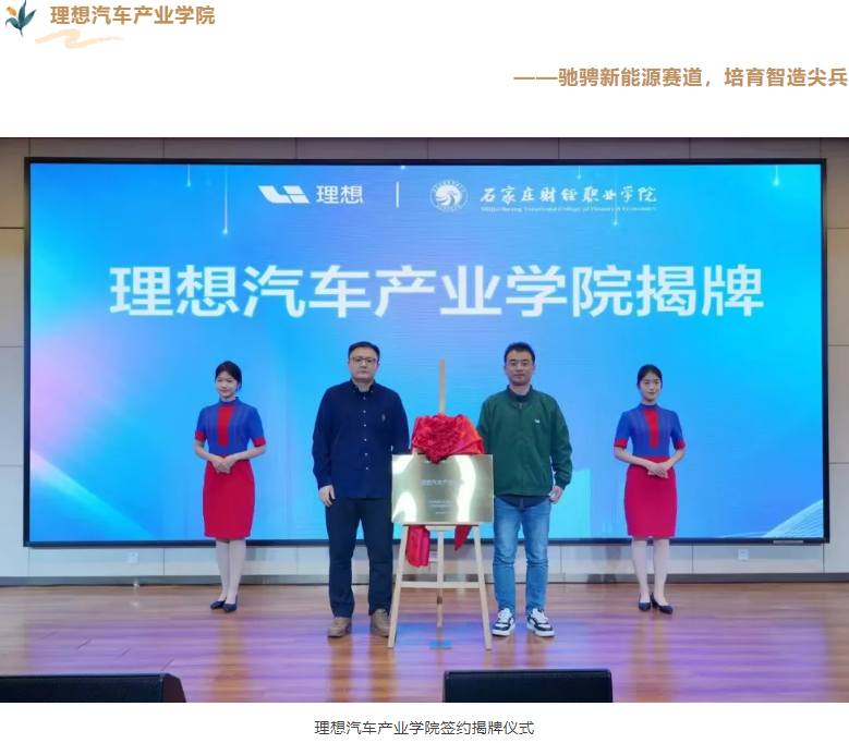 学校与中国领先的新能源智能汽车制造商——北京理想汽车有限公司正式签约,合作共建理想汽车产业学院。产业学院以中国特色学徒制为核心,将企业文化、行业标准融入人才培养全过程,聚焦新能源汽车研发、生产等关键领域,助力学生夯实专业基础、提升实践技能,成长为符合行业需求的中高端应用型人才,为制造强国、质量强国添砖加瓦。
