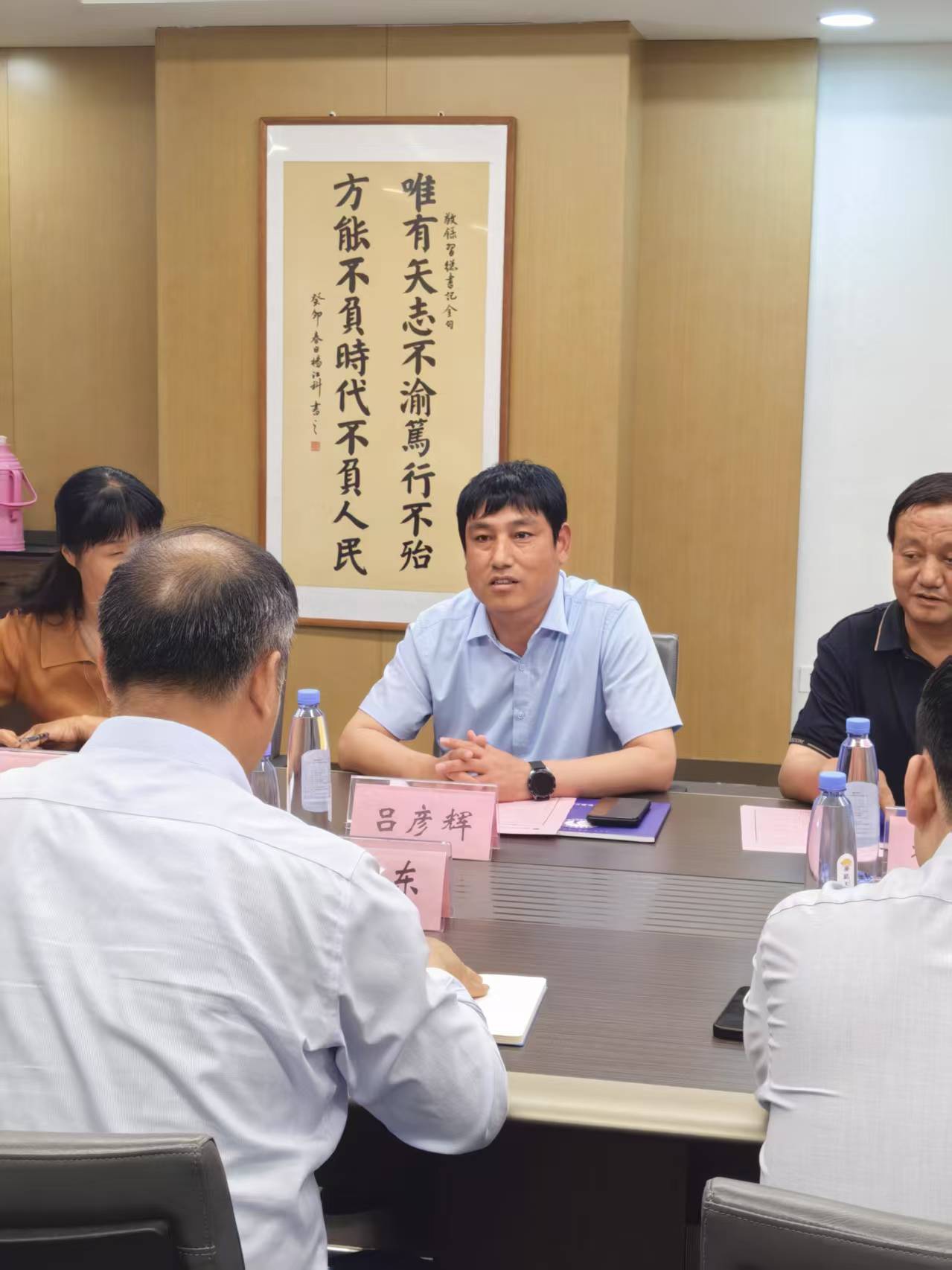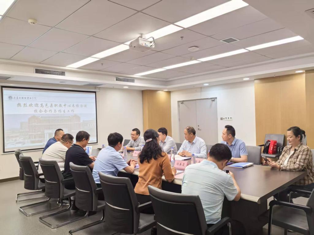 5月14日下午,高邑县职教中心书记、校长吕彦辉,副校长杨占辉、闫英霞郭荣芬等一行莅临伟德官网,就校校合作等事宜进行了交流研讨;党委书记薛向东、副校长李同鑫,校企合作与就业处处长、招生办公室主任参加了此次洽谈会。