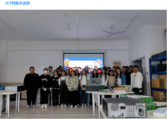 ICT创新实训室占地面积130㎡,工位数48个,面向移动通信技术、移动互联应用技术等相关专业,是学校与河北唐讯信息技术有限公司共同打造的一个开放、体验、开发式院级实训室。ICT创新实训室包括教学试验区、作品展示区,承担创新创业等相关课程的实训、实践任务,为ICT技能竞赛培训及第二课堂的创新创业训练提供一体化平台。同时引入企业创客工坊,具有专业教学与创新教育相融合的特点。