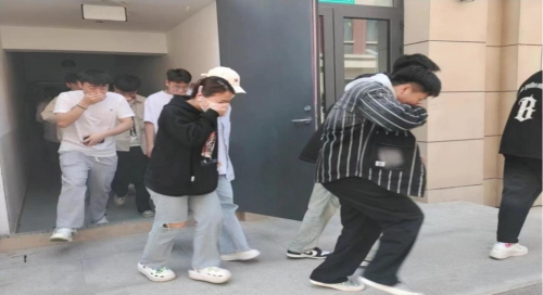 随着演习开始指令的发出,消防逃生演练拉开帷幕。辅导员严格按照消防逃生演练方案和火灾事故处置预案程序,迅速进行人员疏散和救援。同学们服从指挥,行动迅速,撤离有序,向祥云广场集结。