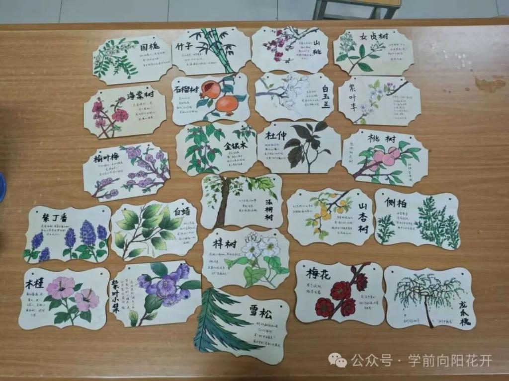 从灵动线条的勾勒,到鲜活色彩的铺陈;从严谨科普文字的排版,到创意艺术图案的设计,同学们反复推敲、精雕细琢每一块树牌:既清晰标注树木名称,又准确描绘其形态特征,以细腻笔触赋予树牌独特美感,让方寸树牌成为融实用性、科普性、艺术性于一体的校园微景观,让自然科普在美育表达中更具感染力与吸引力。