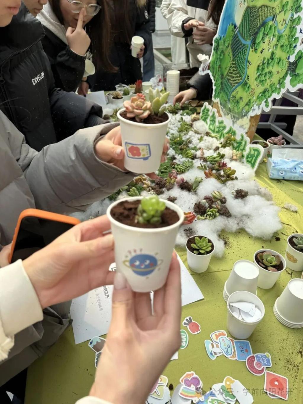 同时,组织部全面统筹物资筹备与后勤保障工作:从多肉绿植、创意树牌、绘画工具、环保桌布等物料的精心采购,到特意收集咖啡渣用于多肉种植基质改良,每一处细节都践行着绿色环保理念,每一项准备都为此活动圆满落地保驾护航。