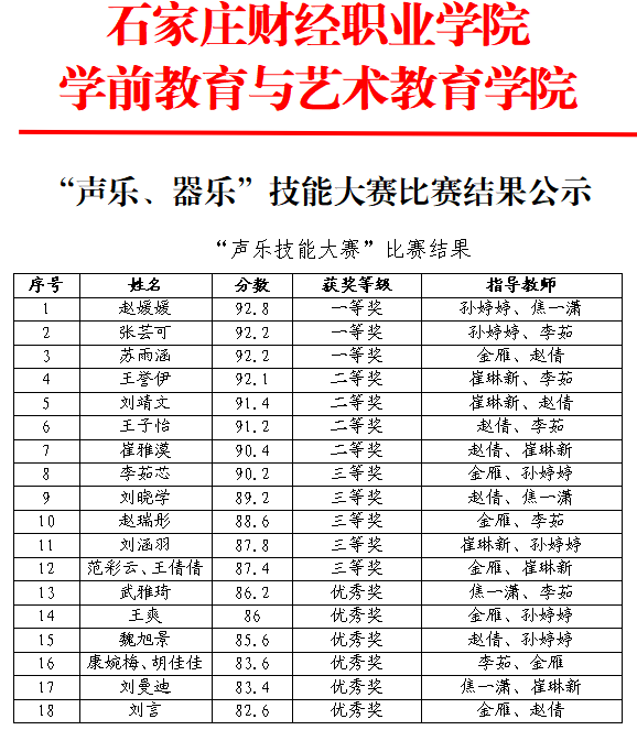 伟德官网“声乐、器乐”技能大赛比赛结果公示