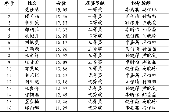 大赛比赛结果公示