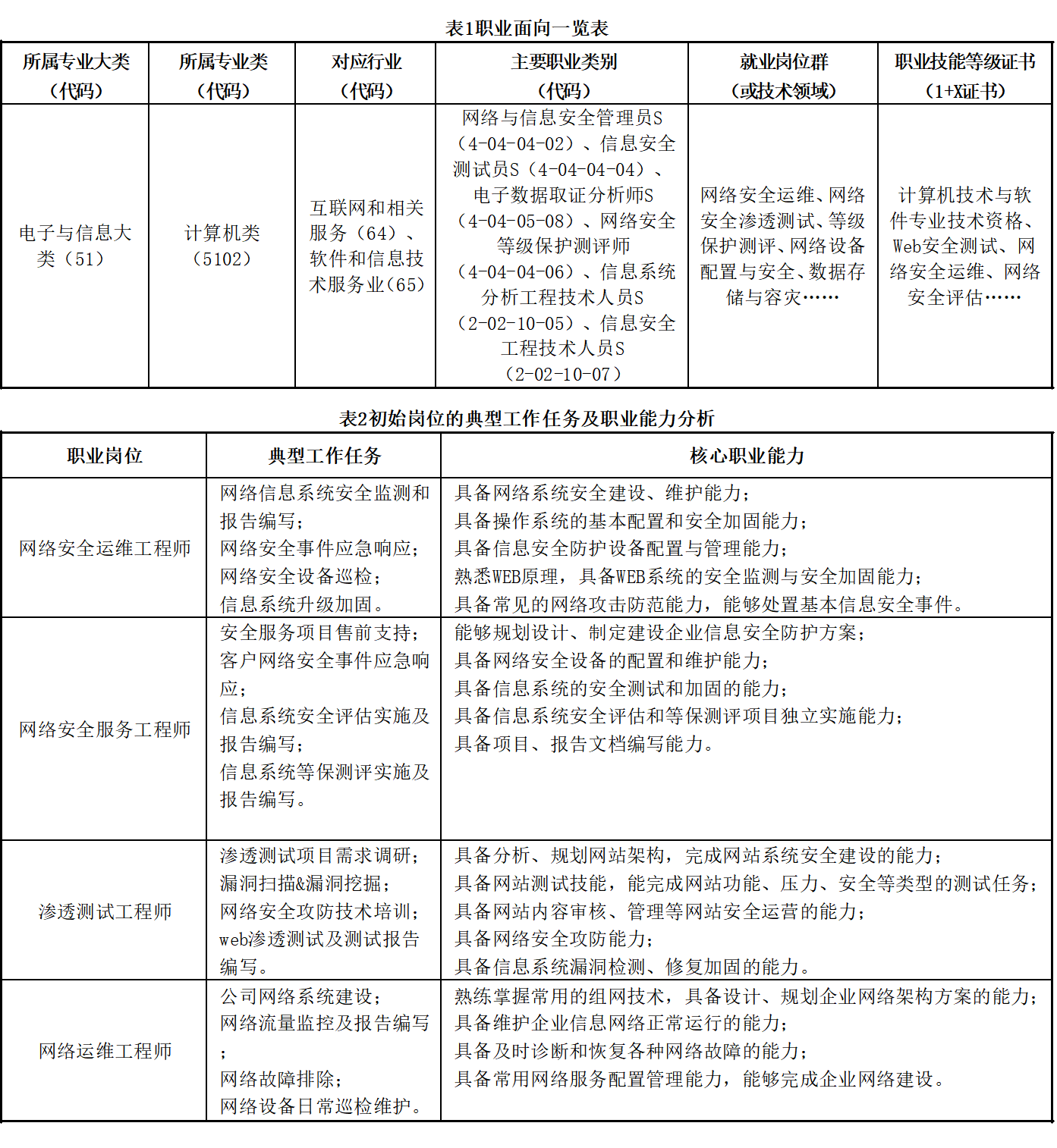 为适应科技发展、技术进步对行业生产、建设、管理、服务等领域带来的新变化,顺应互联网和相关服务、软件和信息技术服务业等行业数字化、网络化、智能化发展新趋势,对接新产业、新业态、新模式下网络安全运维、网络安全渗透测试、等级保护测评、网络设备配置与安全、数据存储与容灾等岗位(群)的新要求,不断满足信息安全产业高质量发展对高素质技能人才的需求,推动职业教育专业升级和数字化改造,提高人才培养质量,遵循推进现代职业教育高质量发展的总体要求