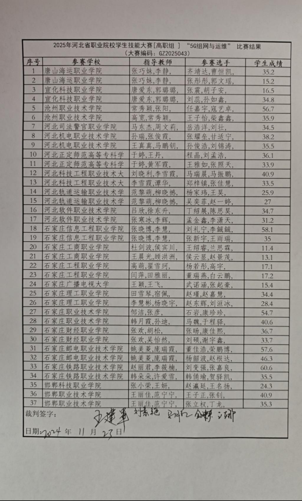 2024年11月23日近日,2025年河北省职业院校技能大赛(高职组)5G组网与运维赛项在石家庄铁路职业技术学院成功举办。本次大赛聚集了来自全省多所职业院校共计37支参赛队伍,竞赛内容涵盖了5G网络的规划、建设、维护和优化等多方面的技能。该项赛事是对学生专业技能的一次全面检验,旨在推动职业教育质量的提升和行业技术的创新发展。通过实际操作和理论考核的结合,考查了参赛学生的综合应用能力和创新解决问题的能力。