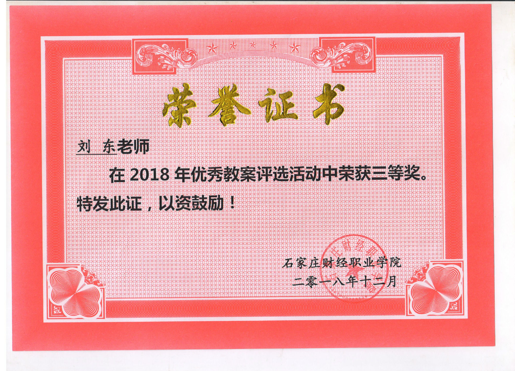 刘东老师获奖