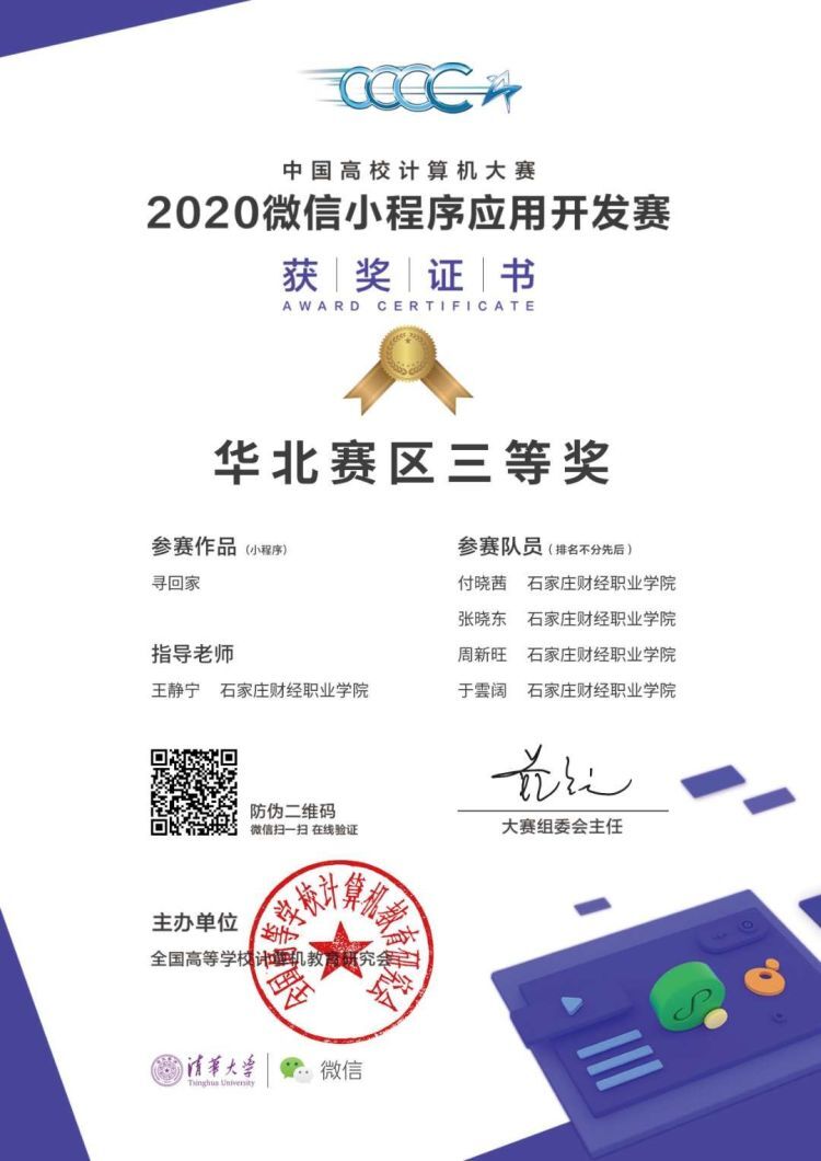 高校微信小程序大赛华北区三等奖